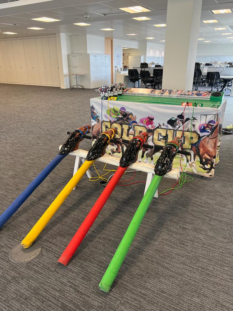 Make your event unforgettable with fast, fun and competitive entertainment. We offer games hire corporate Gold Cup Hire in Colchester, Harlow, Suffolk, Kent, Chelmsford, Ipswich, Braintree, London, Essex, Nottingham, Slough, Reading, Bracknell, Grantham, Northampton, Sussex, East Anglia, Bedfordshire, UK. 🐎🏆 Perfect for corporate hire, exhibition games and office games, the Gold Cup delivers spectacle and engagement for every audience.