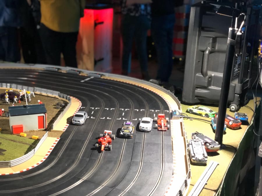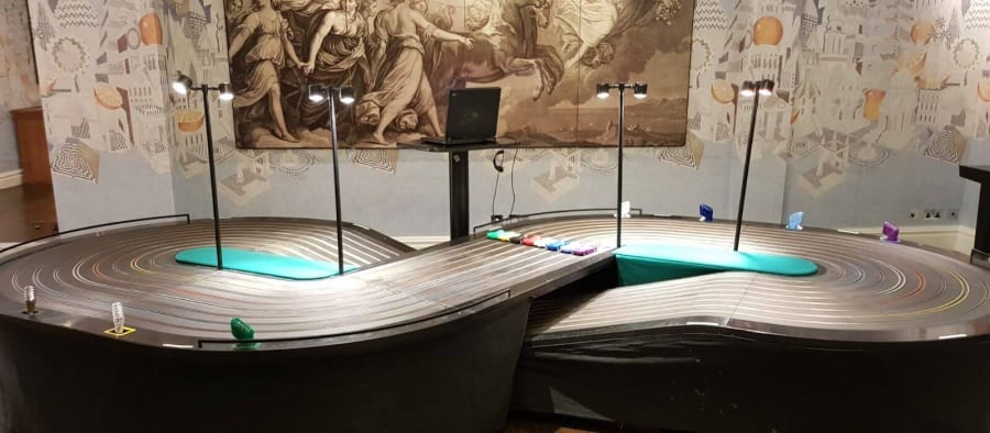 6 Lane Giant Scalextric track hire in Essex and London.